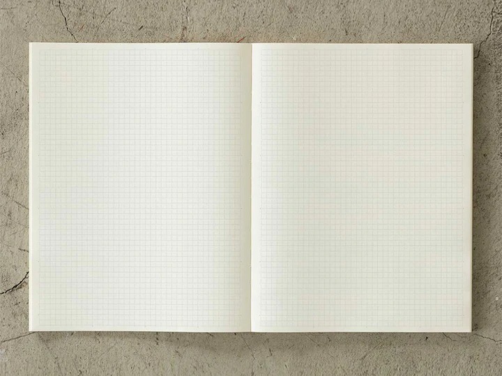The Midori 2026 MD Notebook Diary A4 Thin is a monthly diary that emphasizes portability by slimming down to only monthly spreads, followed by memo pages with a light blue inked 5x5mm grid. It runs from December 2025 – January 2027, and perfectly combines the original functions of a diary with the pleasure of writing freely.