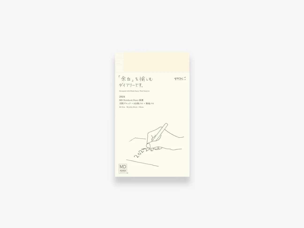 The Midori 2026 MD Notebook Diary B6 Slim is a compact monthly diary that combines the original functions of a diary with the pleasure of writing freely. It features monthly spreads in the front, covering December 2025 – January 2027, followed by lined spreads divided into 8 horizontal sections to create weekly spreads. Additional blank pages provide space for notes, ideas and sketches.