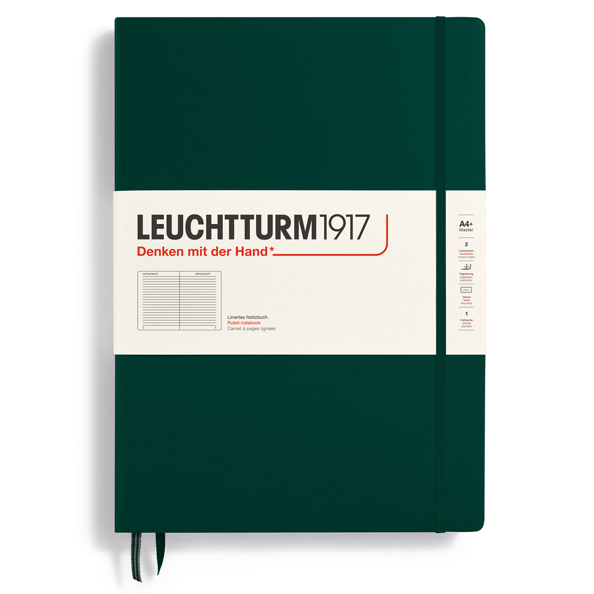 Leuchtturm1917 A4 Classic – En anteckningsbok något större än A4 så att lösa A4-ark får plats mellan sidorna utan att sticka ut. Anteckningsboken har 233 numrerade sidor med syrafritt 100 g/m2 papper, som inte blöder igenom.