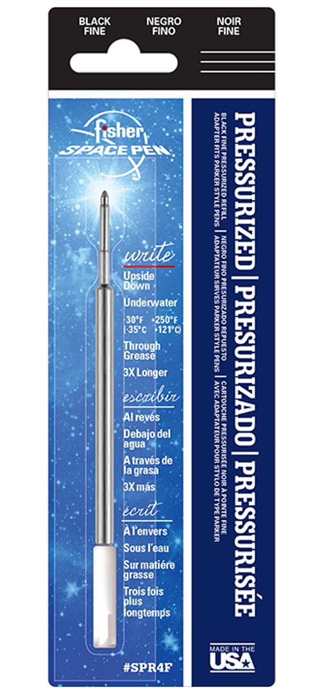 Fisher Space Pen’s Sealed Pressurized Ink Cartridge performs in temperatures from -30º F to +250º F, underwater, in zero gravity, at any angle–even upside down! The ultimate in dependability!