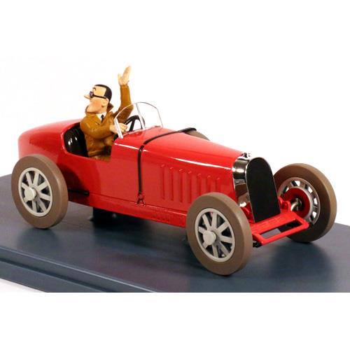 Denna fantastiska samlarmodell i skala 1:24 föreställer den klassiska Bugatti som körs av skurken Bobby Smiles i äventyret Tintin i Amerika. Med sin strömlinjeformade design och klara färger är det en av de mest eleganta bilarna i hela Tintin-serien.