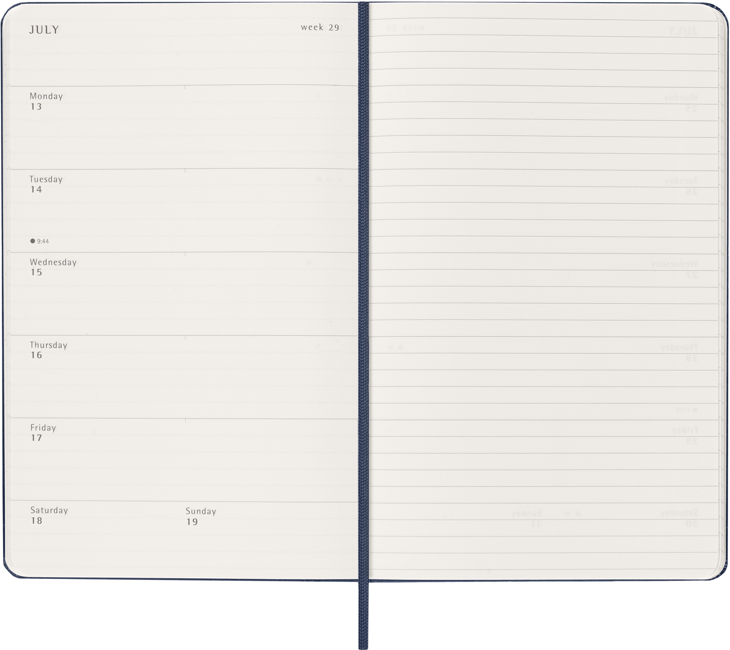 Det är enkelt att hålla koll på veckan med denna populära 12-månaders notebook kalender från Moleskine. Daterad från januari till december med alla veckans dagar på vänster sida och plats att skriva och rita på höger sida. Innehåller dessutom års- och månadsöversikt.