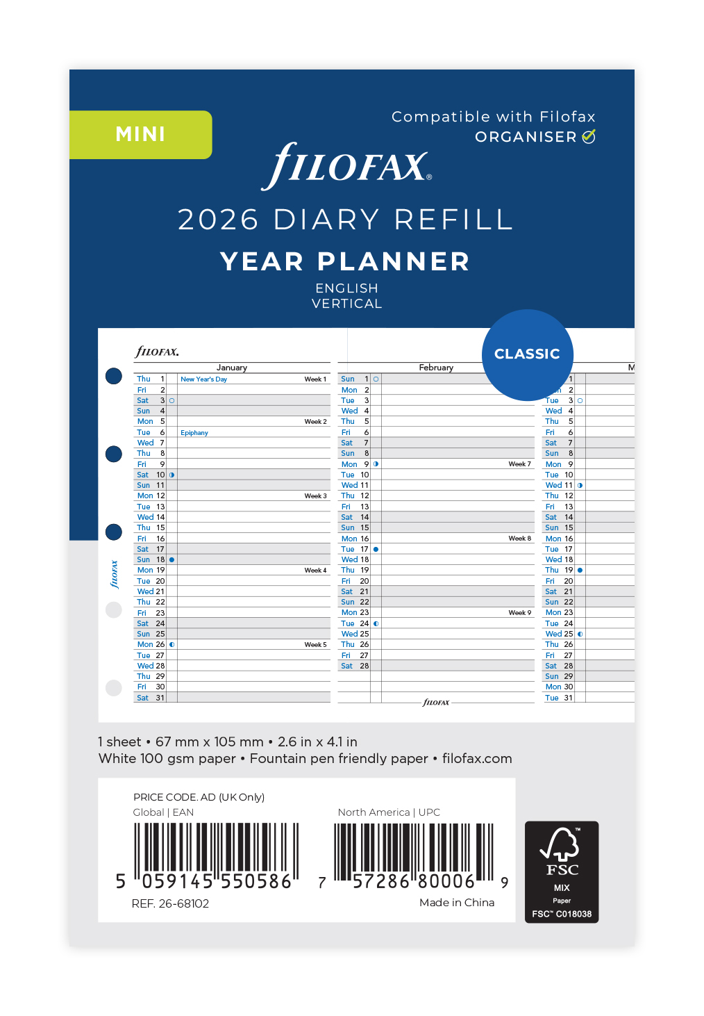 Kategori: Papper Kalender Filofax Refill (daterad) 2026