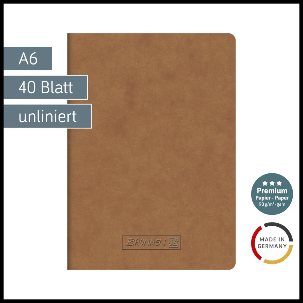 Exercise Book A6 80p blank, Premium brown