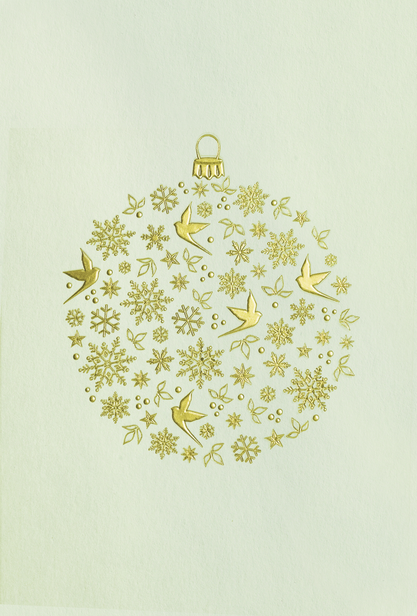 Hot Foil Cards Christmas ball with snowflakes and birds gold on cream 17×23/2