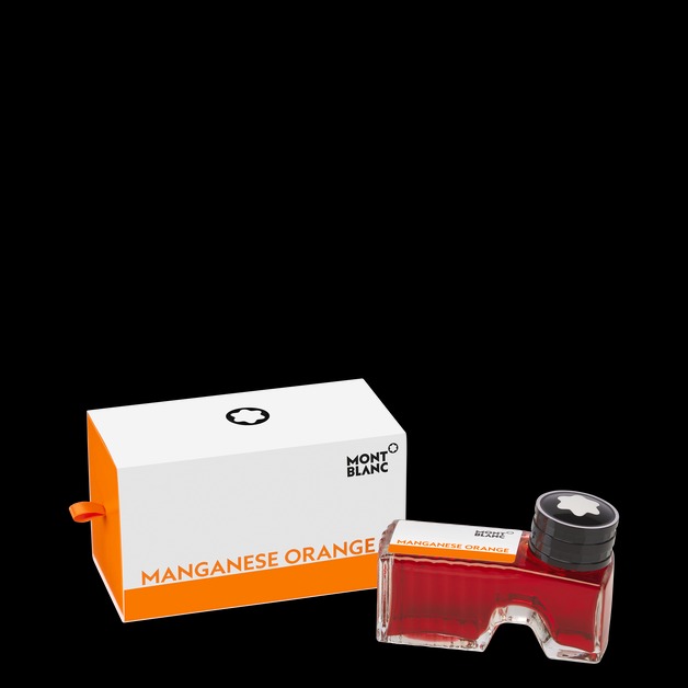 Montblanc Ink Bottle, Manganese Orange – 60ml Ink bottle with front compartment for emptying residue into.