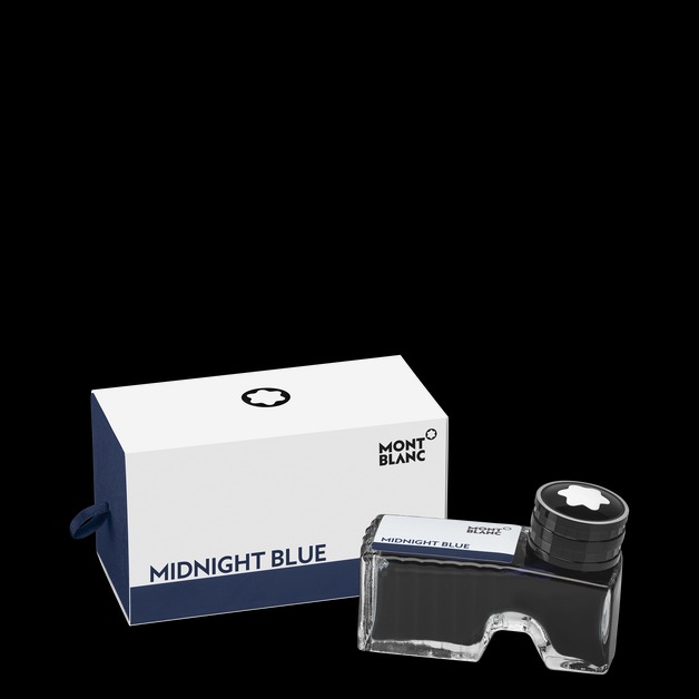Montblanc Ink Bottle, Midnight Blue – 60ml Ink bottle with front compartment for emptying residue into.