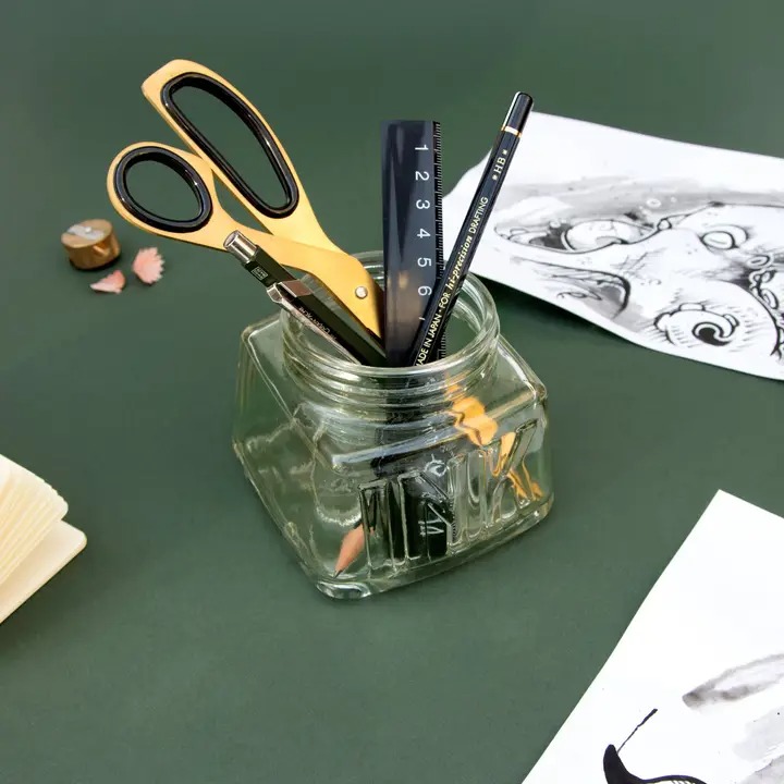 Classic glass pencil pot.