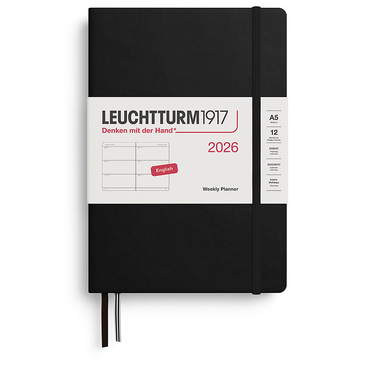 Leuchtturm1917 Kalender 2026 Vecka/Uppslag – En kalender från Leuchtturm1917 för 2026 i A5-format med en veckoöversikt per uppslag. Specifikation: _x000D_