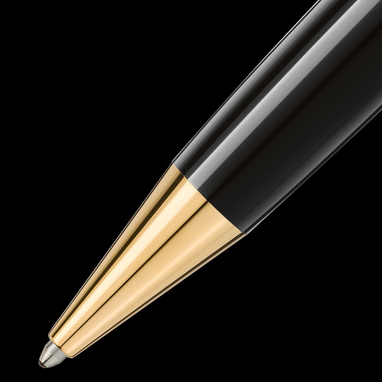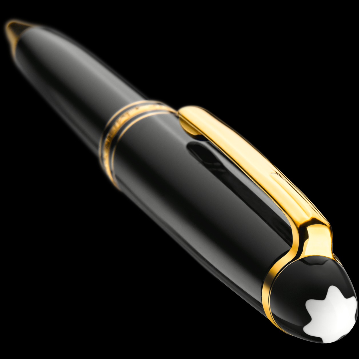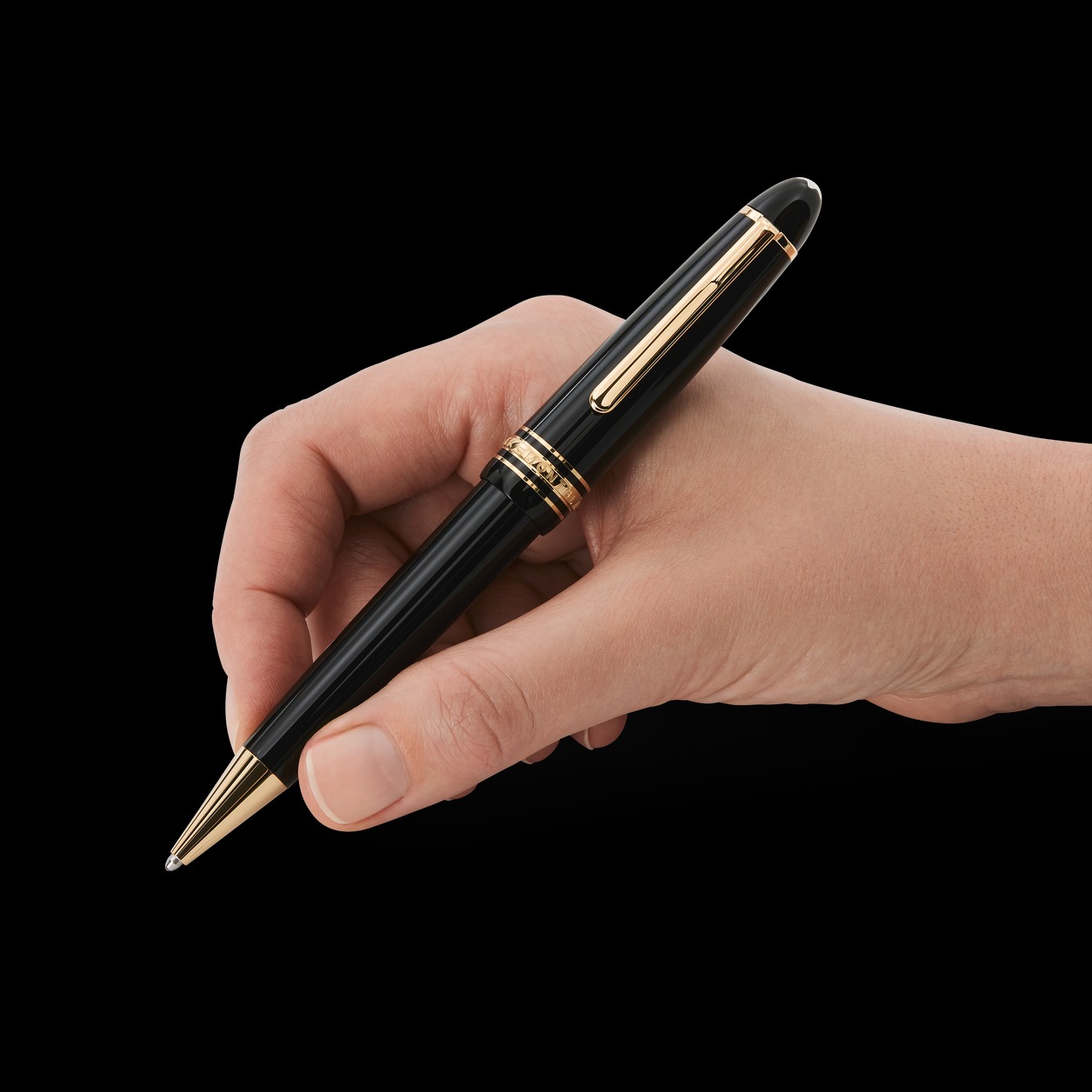 The Meisterstück LeGrand in deep black precious resin with gold-coated details and surmounted by the white star emblem evolves into Montblanc’s design icon.