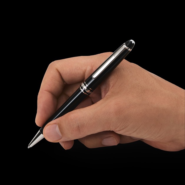 The luxury ballpoint pen Meisterstück Classique evolves into a distinctive design icon. Cap and barrel are crafted in black precious resin inlaid with a white Montblanc emblem. Three platinum-coated rings with embossed Montblanc lettering and a platinum-coated clip with an individual serial number emphasize the timeless design of this luxurious ballpoint pen. To express your personality, Montblanc offers a gratuitous engraving of names or initials by the right side of or on the elegant platinum-coated clip. At a time when individuality is becoming increasingly rare, our Mystery Black, Pacific Blue, Nightfire Red, Fortune Green, Amethyst Purple and Barbados Blue ballpoint pen refills let you show your individual writing style.