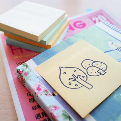 Självhäftande Kom-ihåg-lappar som fäster överallt om och om igen utan att skada underlaget.