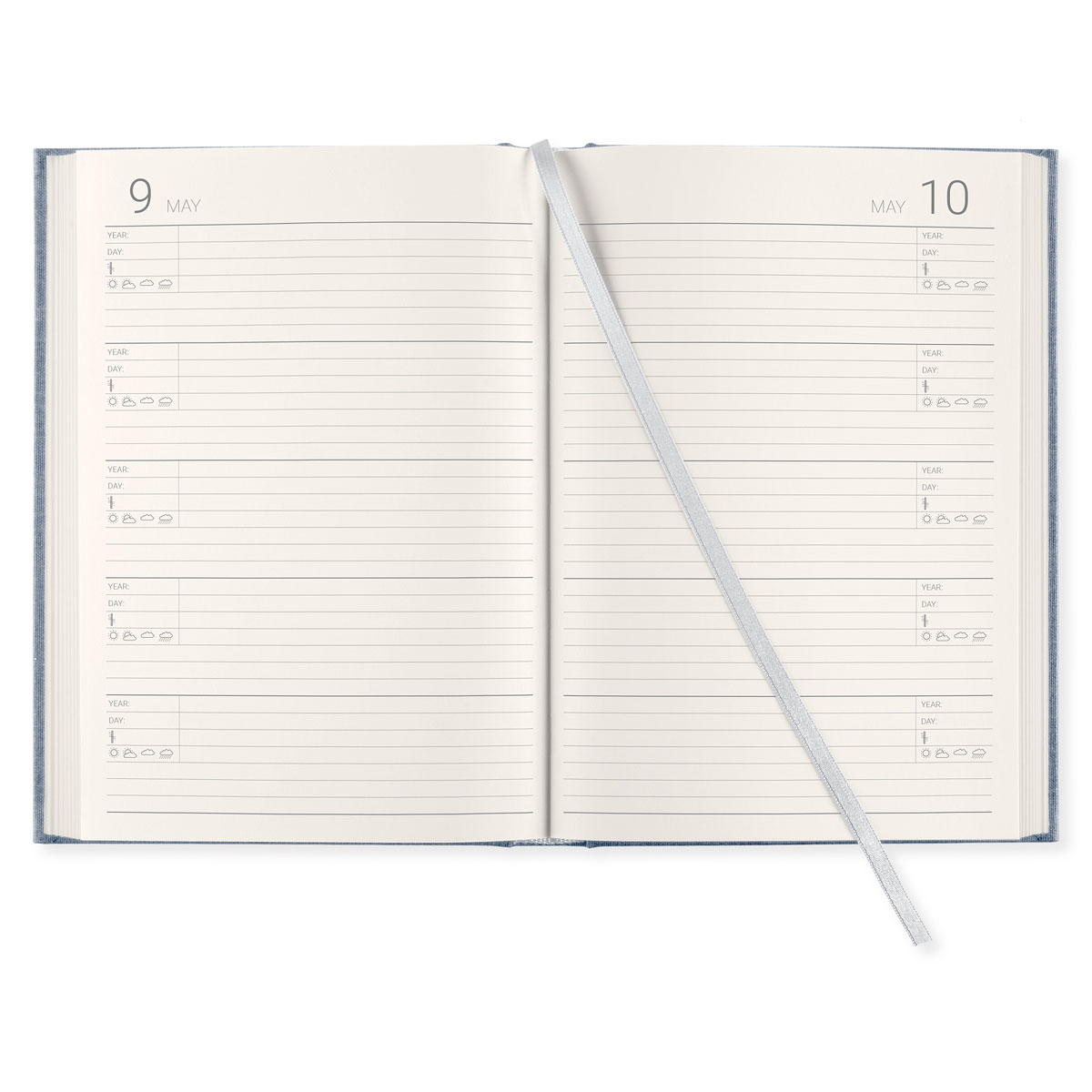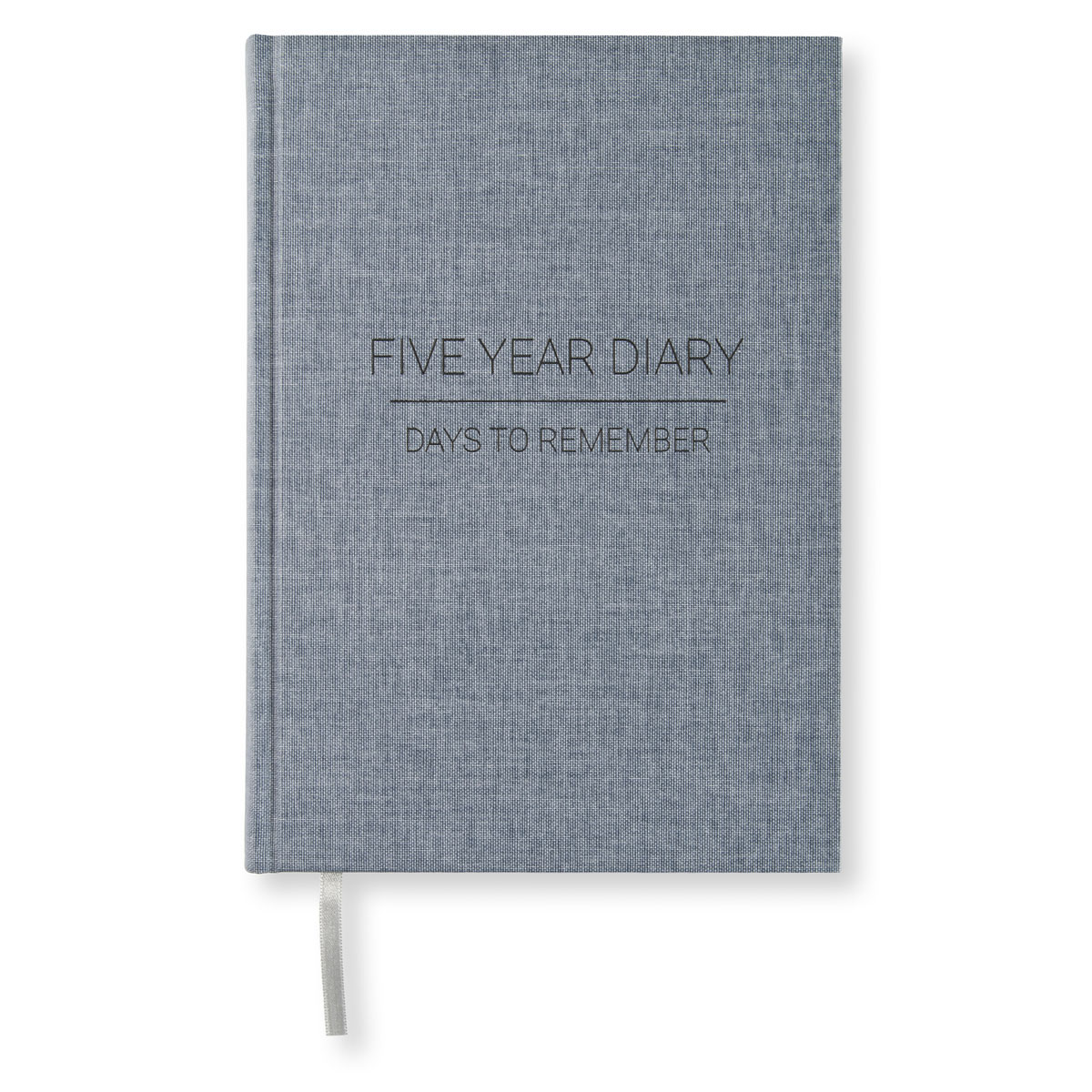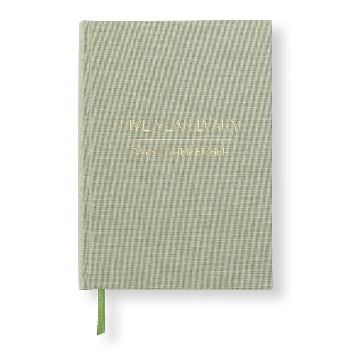 Hållbar 5-årsdagbok (Engelsk version) i A5-format med med sidor för Bucket list, livsmål, femårsplan och bemärkelsedagar. Svensk formgivning och vackert omslag i textil. Finns i flera färger. Matchande Kapitäl- och märkband. Svenskt miljöcertifierat och syrafritt kvalitetspapper för hög skrivkomfort.