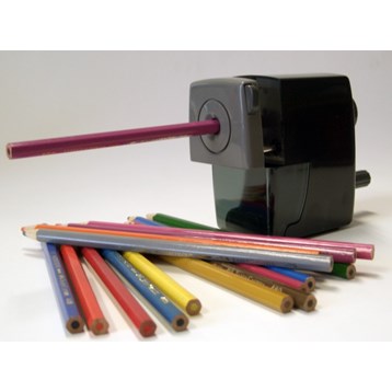 Bordsvässare för standardpennor upp till 8mm, med vev, plastkåpa, tving och automatstopp.