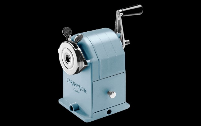 For the occasion, rediscover the iconic sharpening machine in iridescent ice blue, subtly enhanced by nickel-plated attributes.