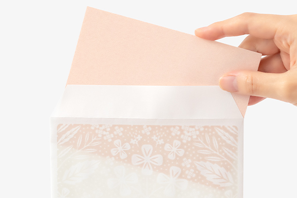 and a watermarked envelope. The watermarked part of the envelope is transparent like tracing paper, and when the folded letter is placed inside, the delicate pattern beautifully emerges.