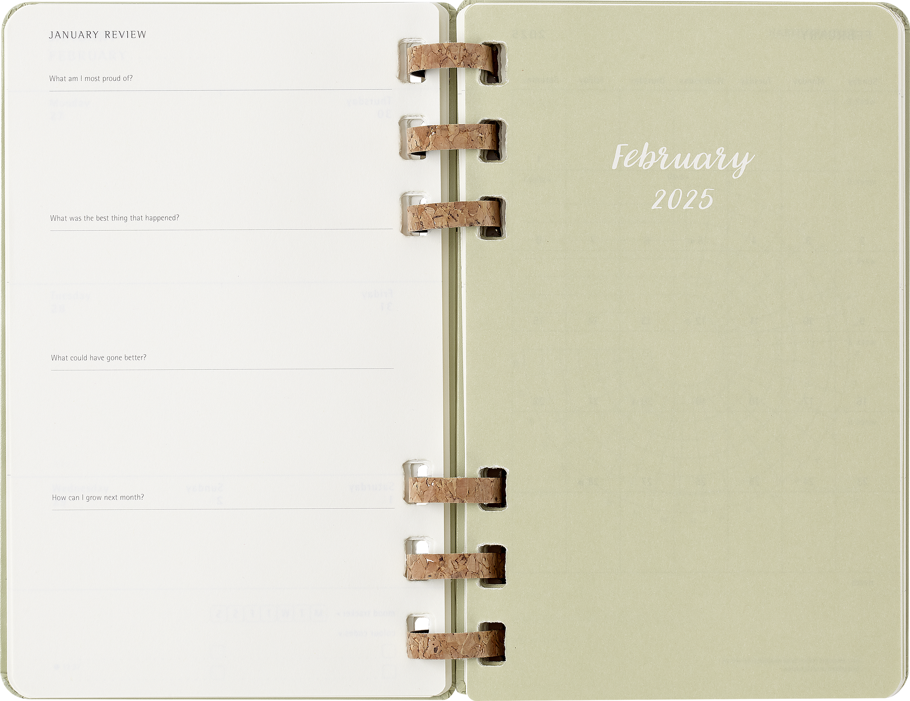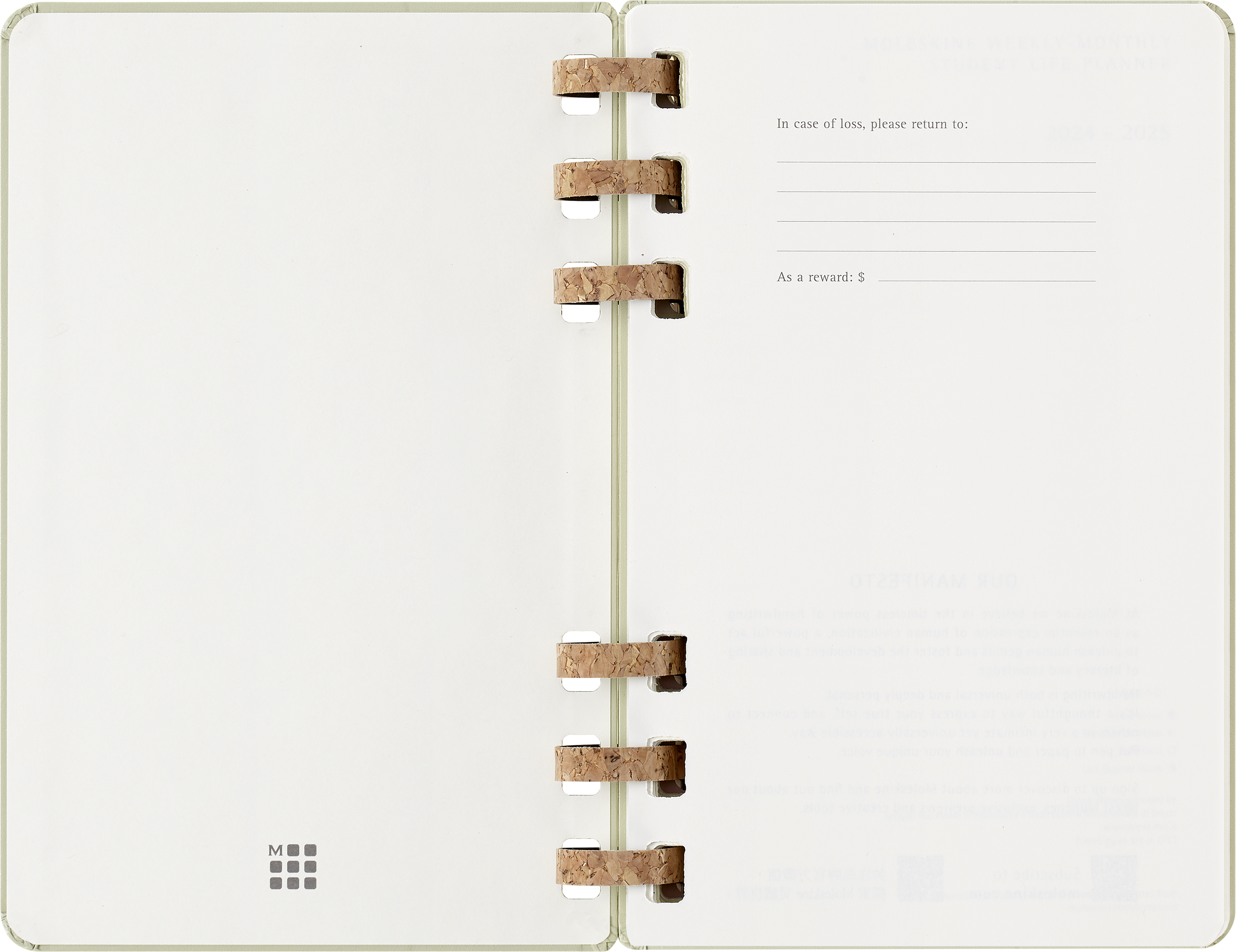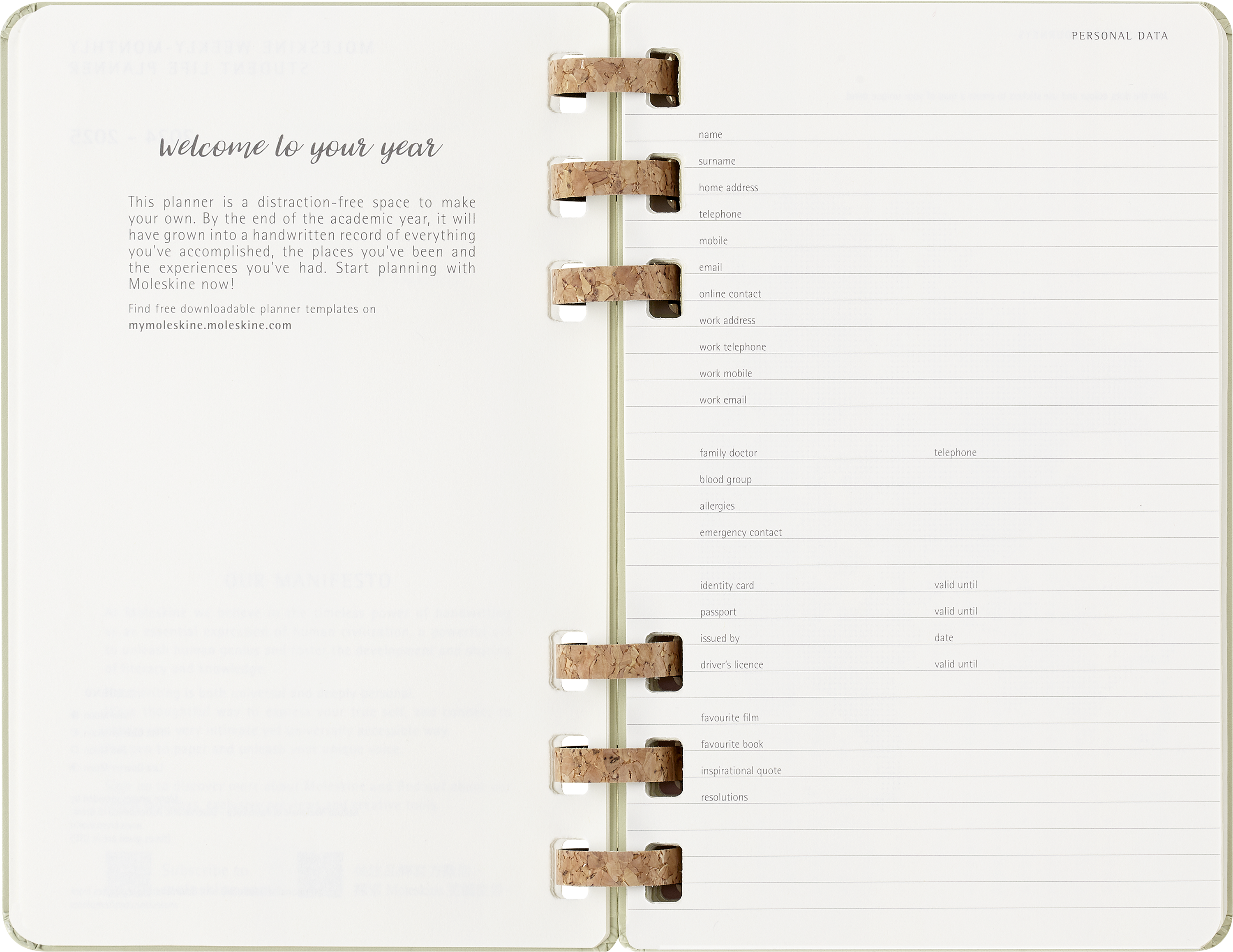 12-månaders studentkalender daterad från januari till december. Med spiralrygg i kork och miljövänligt högkvalitativt 100g ‘Remake’ papper från Italienska ‘Favini Paper’. Kombinerad månads- och veckolayout för ultimat möjlighet att skriva och planera. Kalendern är full av innehåll utvecklat för att stötta dina studier. Omfattande innehåll utvecklat specifikt för att fungera som ett stöd i studentlivet.