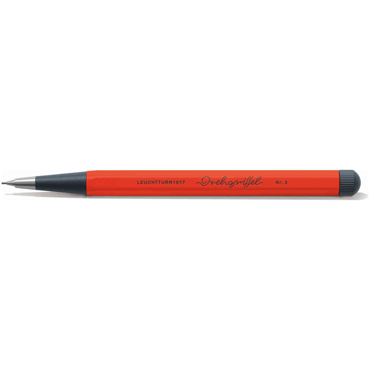 Leuchtturm1917 Drehgriffel Stiftpenna – Tillverkad av precisionsslipad aluminium, mässing och stål. Twistmekanismen för smidigt fram stiftet. Inuti pennan finns en behållare som rymmer flera stift och som genast trycker fram ett nytt när stiftet är förbrukat.