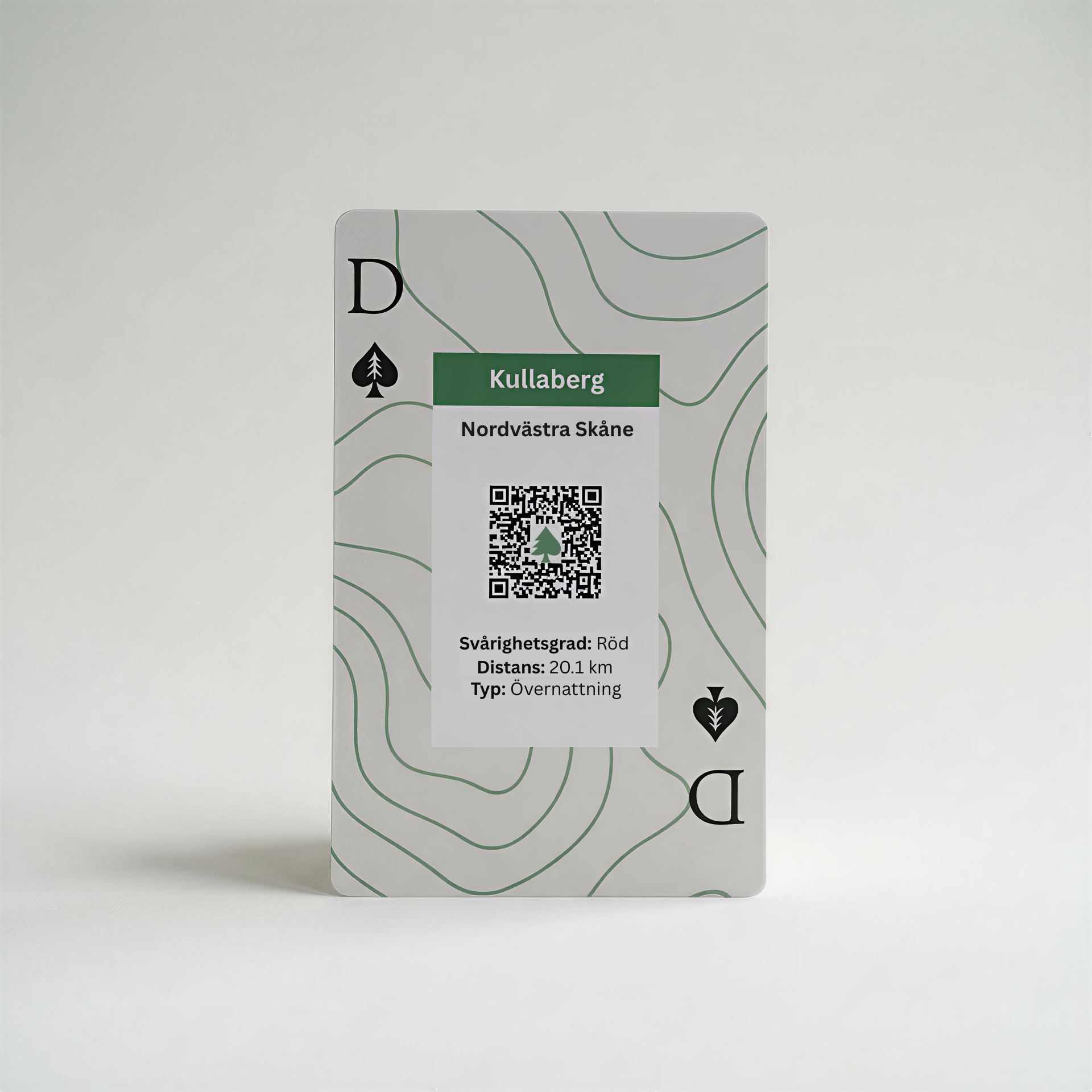 Vår idé är att uppmuntra fler att ta sig ut i naturen. Med vår kortlek får spelkort ett helt nytt syfte – varje kort erbjuder en unik naturupplevelse. Genom att scanna QR-koden på kortet får du tillgång till en sida med all information du behöver för ditt nästa äventyr: hur du tar dig dit, packlista, rekommenderad led och mycket mer. Kortleken fungerar precis som en vanlig spelkortlek, men vänder du på korten får du inspiration och vägledning till några av Sveriges bästa naturupplevelser. På så sätt kombinerar vi spel och spontanitet med äventyr och friluftsliv.