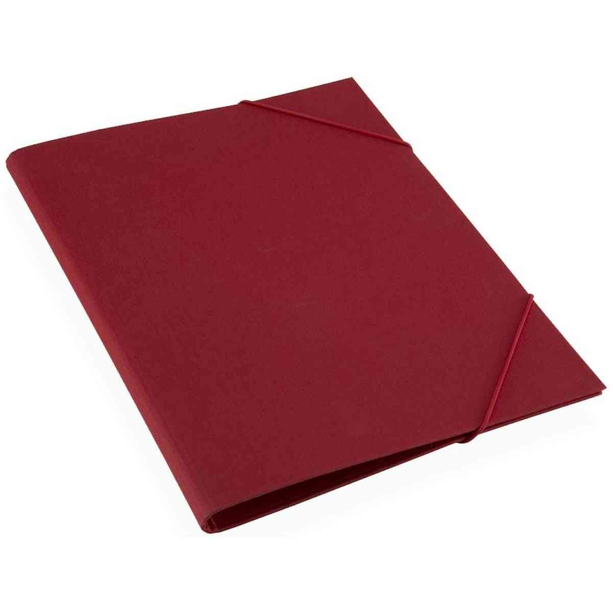 Praktisk och snygg mapp med elastisk snodd klädd med bokbinderiväv. Matchade tåligt papper på insidan.