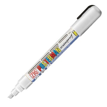 Märkpenna med 6.0 mm medium skuren spets. Resultatet liknar krita, men utan kladd – texten blir vattenfast när den har torkat. Perfekt för utom- och inomhusbudskap i butiker, restauranger, pubar m.m. och det går bra att skriva på till exempel svarta tavlor, fönster, speglar, keramik, papper, glas, plast, metall, trä, sten och mycket mer. Zig Posterman Vattentäta kritpennor är extremt mångsidiga och har en mycket täckande bläck. De är vattentäta när de har torkat och kan klara sig utomhus i upp till ett år. Skriften tvättas enkelt bort från icke-porösa ytor med hjälp av vanligt fönsterputsmedel.