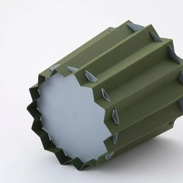 A box designed with paper engineering techniques, utilizing the characteristics of paper. It features beautiful colors and an accordion-like shape that casts gentle shadows. It seamlessly blends into the interior while making a statement.